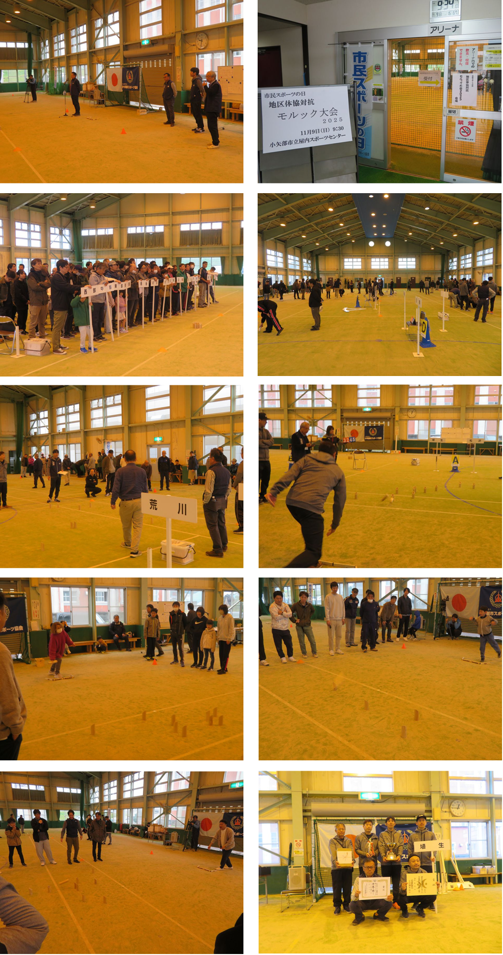 令和7年11月9日(日)市民スポーツの日『地区体協対抗モルック大会2025』小矢部市立屋内スポーツセンターで、午前8時40分より受付を開始し、参加15地区体育協会により、モルック大会を行いなした。